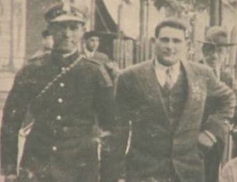 MOSHE BORDOWSKI (left in army uniform) BENJAMINLANDAU (right) KLODAWA : 1937. PHOTO TAKEN FROM 1995 INTERVIEW OF DAVID BURDOWSKI. BENJAMIN LANDAU IDENTITY CONFIRMED BY MENACHEM LANDAU 28OCT2014.